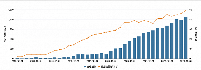 中金基金自成立起,规模也呈稳步攀升。2018年起,中金基金管理规模增速明显。Wind数据显示,截至最新,中金基金共有49只基金,管理总规模为1280.97亿元。