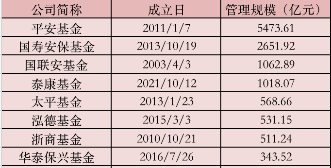 表:保险系公募最新管理规模来源:Wind